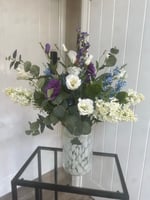 Catmint, eucalyptus, cone head hydrangeas, lisianthus & wild eryngium